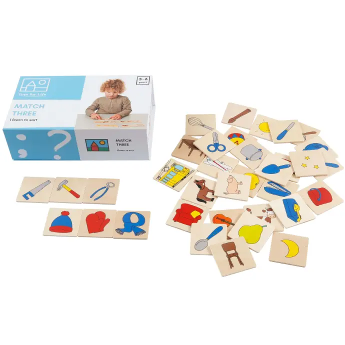 Die Idee ist schlicht, aber wirkungsvoll: Sortieren und Kategorisieren – hochwertig auf Holz gedruckt. Auf 36 Karten sind Alltagsgegenstände und Tiere abgebildet, die vielfältige sprachliche und kognitive Anlässe bieten.